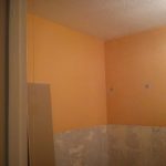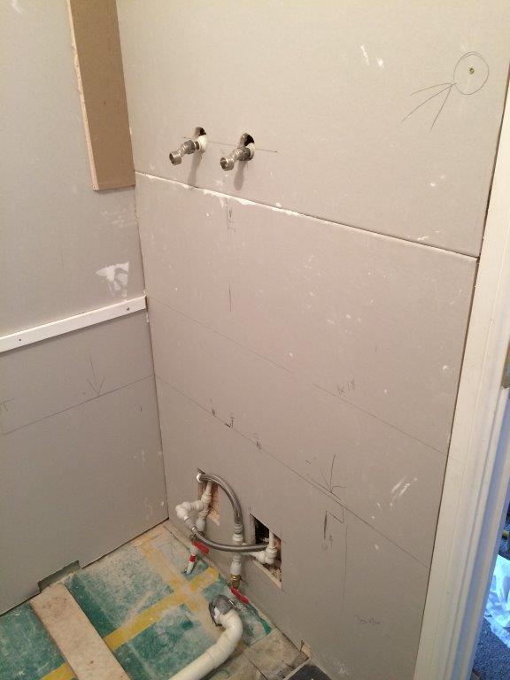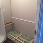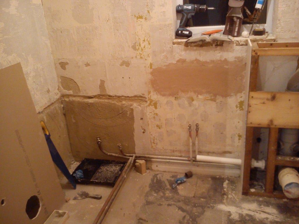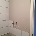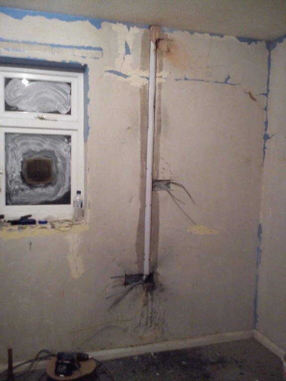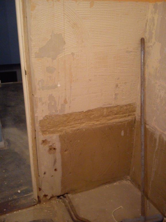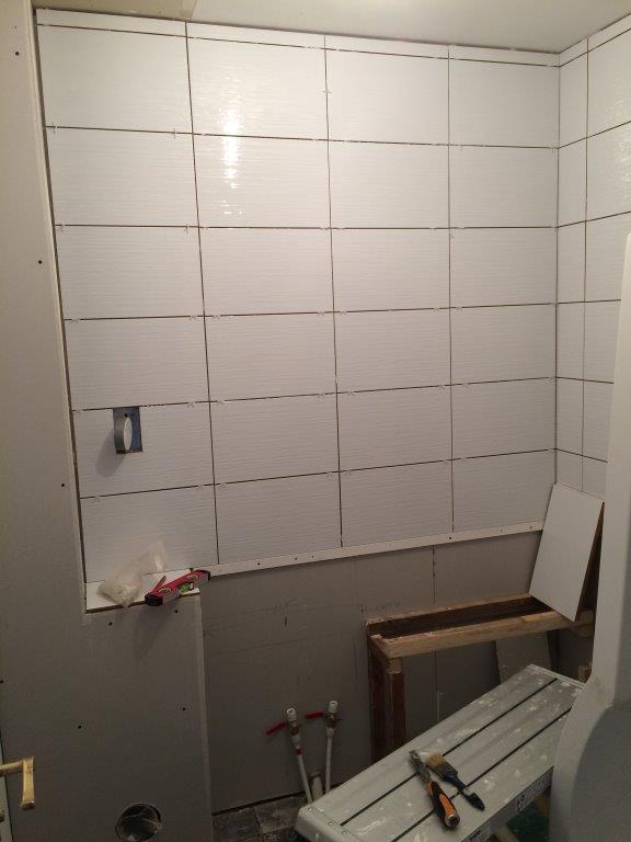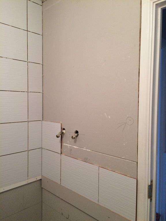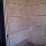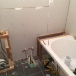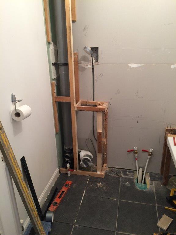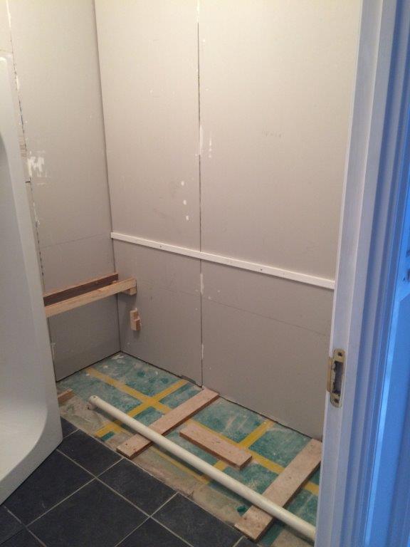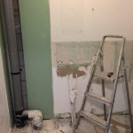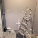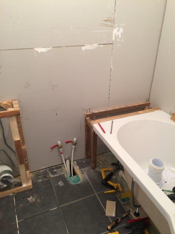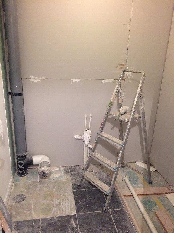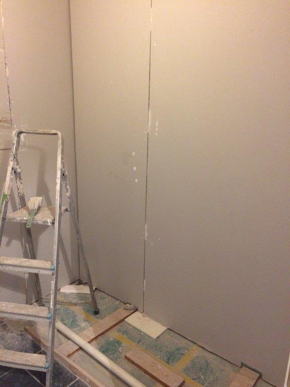 For this particular job l removed the old bath suit and wall tiles, along with the boarding around the soil stack. The walls were in poor state where dampness had penetrated, unfortunately l could not remove the plasterboard entirely as the stud walls were of steel construction, and very flimsy. I strengthened the walls by adding a layer of plaster board.