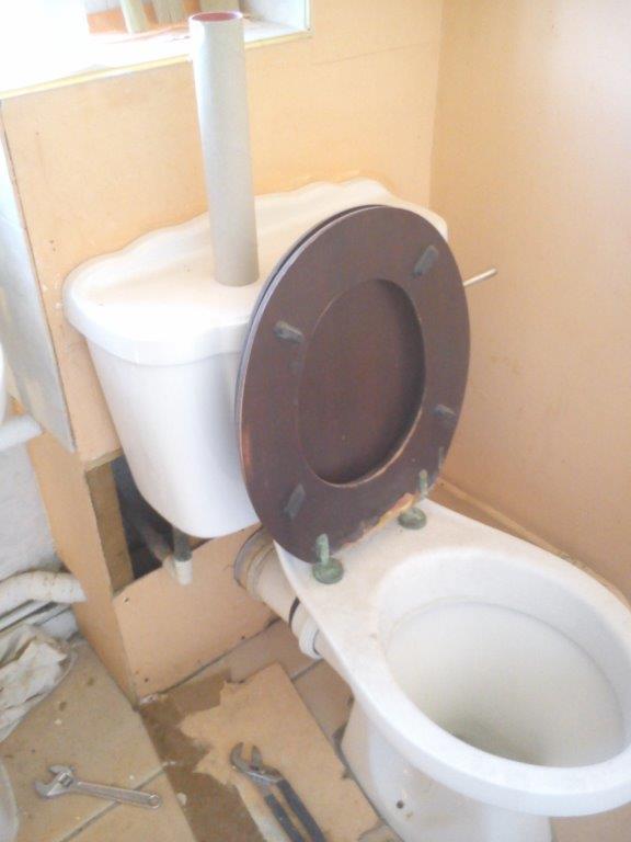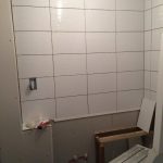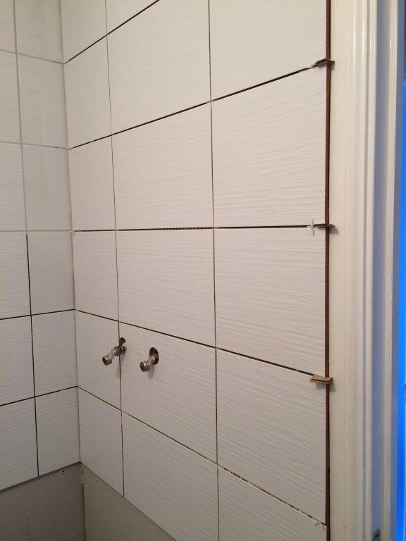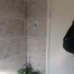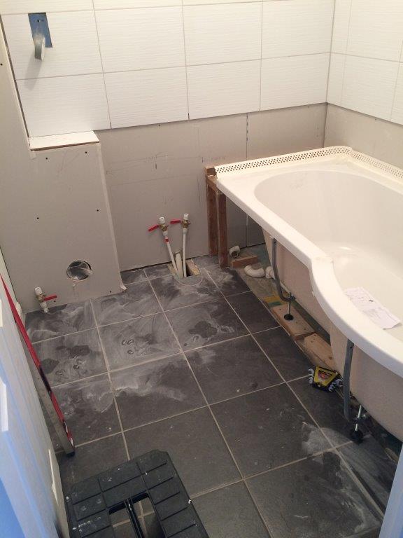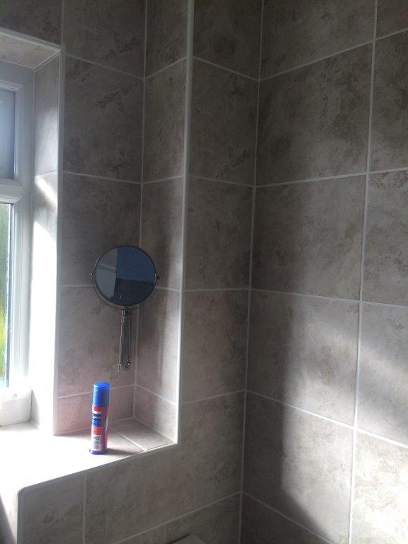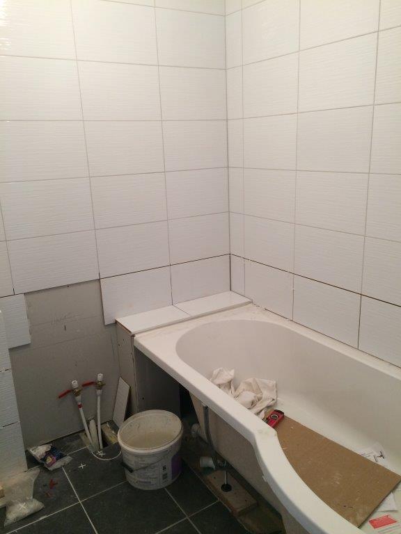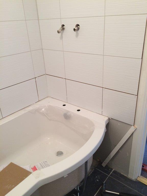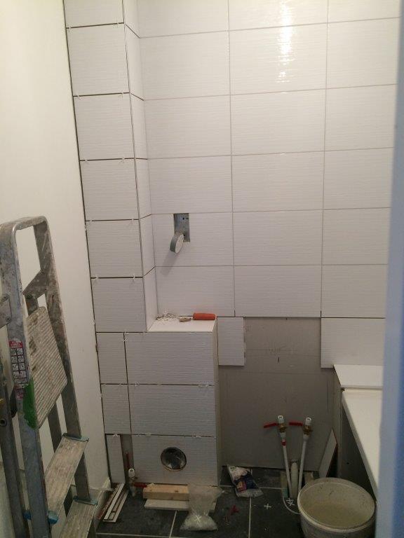 I then built a frame for the soil stack and the end of the bath. The room was then tiled, plumbed and a shaver point added. The floor was sound, l just needed to replace the four tiles under the toilet, fortunately the customer had kept some spare tiles.