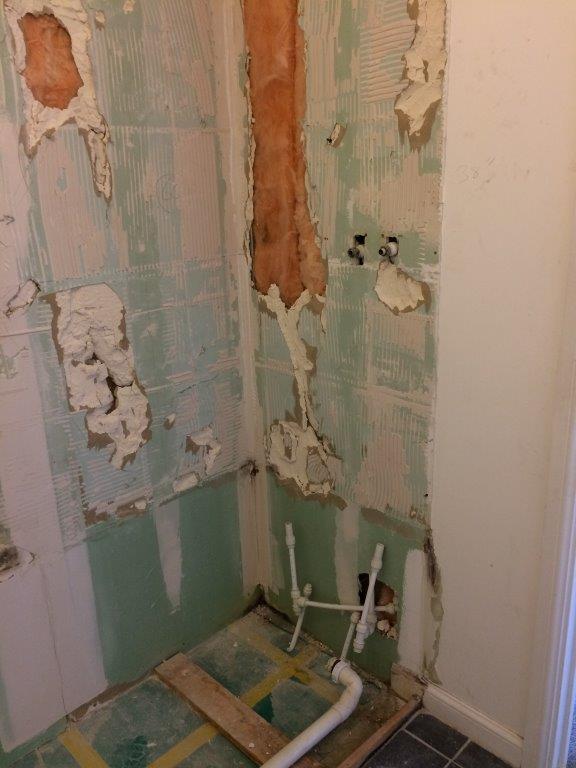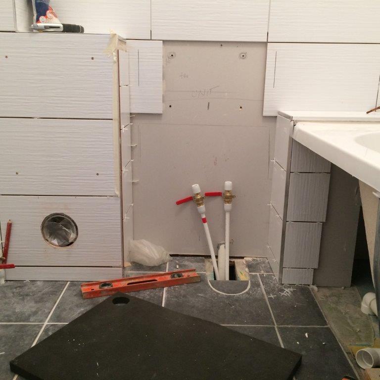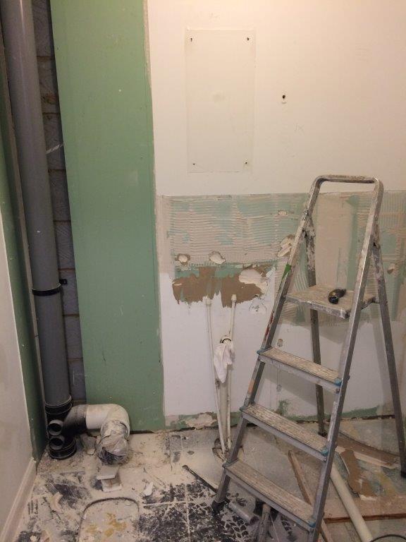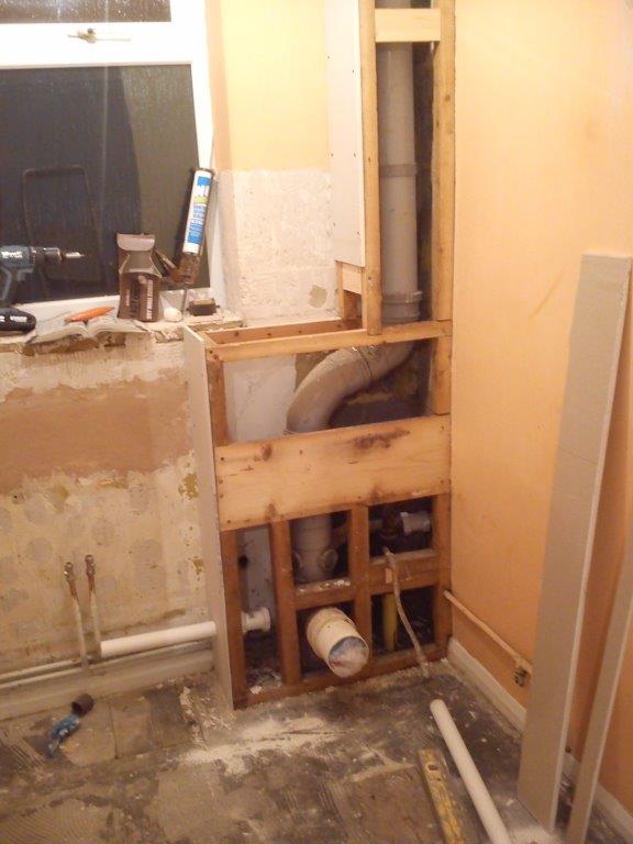 For this particular job I removed the old bath suit and wall tiles, along with the boarding around the soil stack to gain access to plumbing.